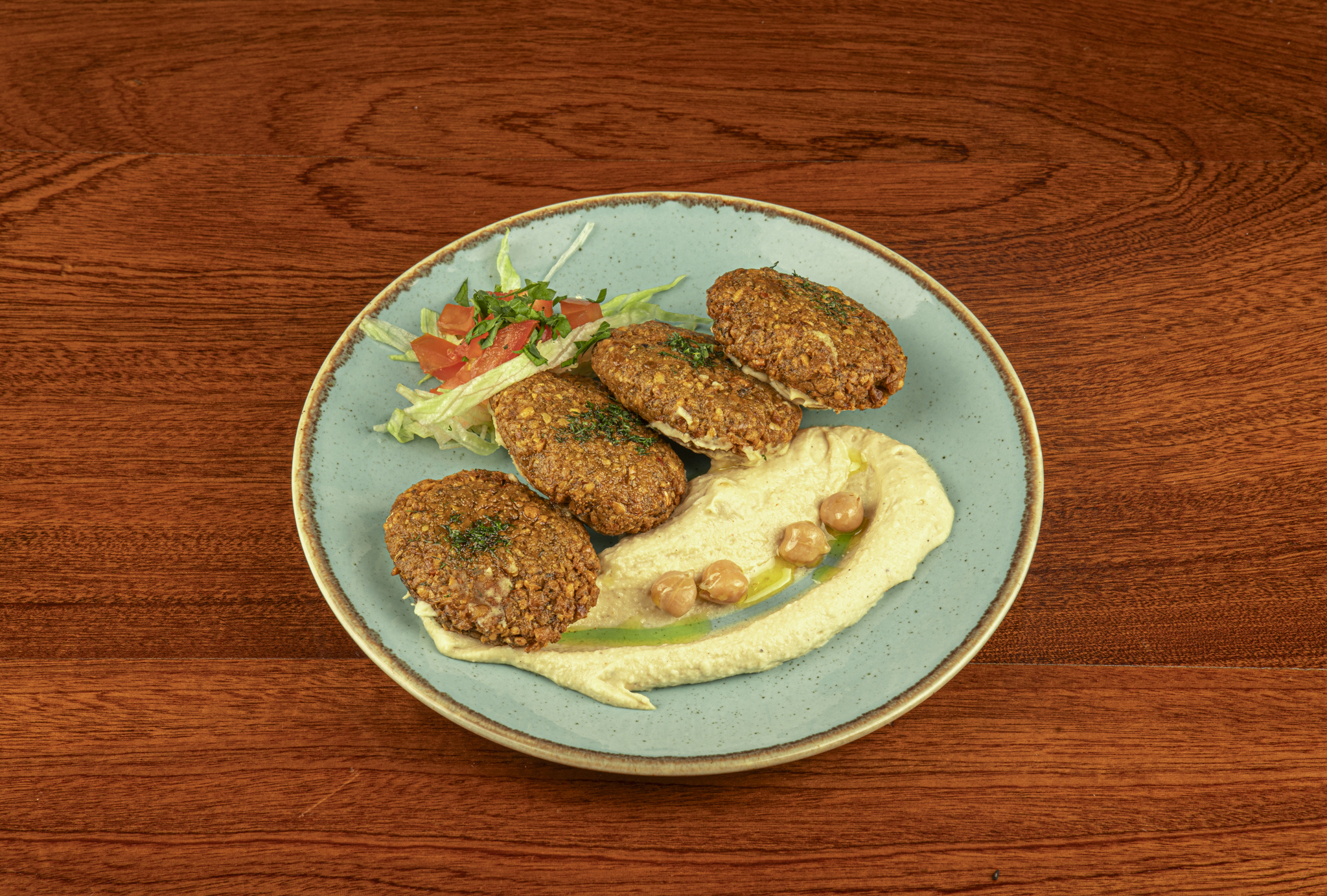 Ground chickpeas and broad beans tossed in spices, deep fried, served with salad