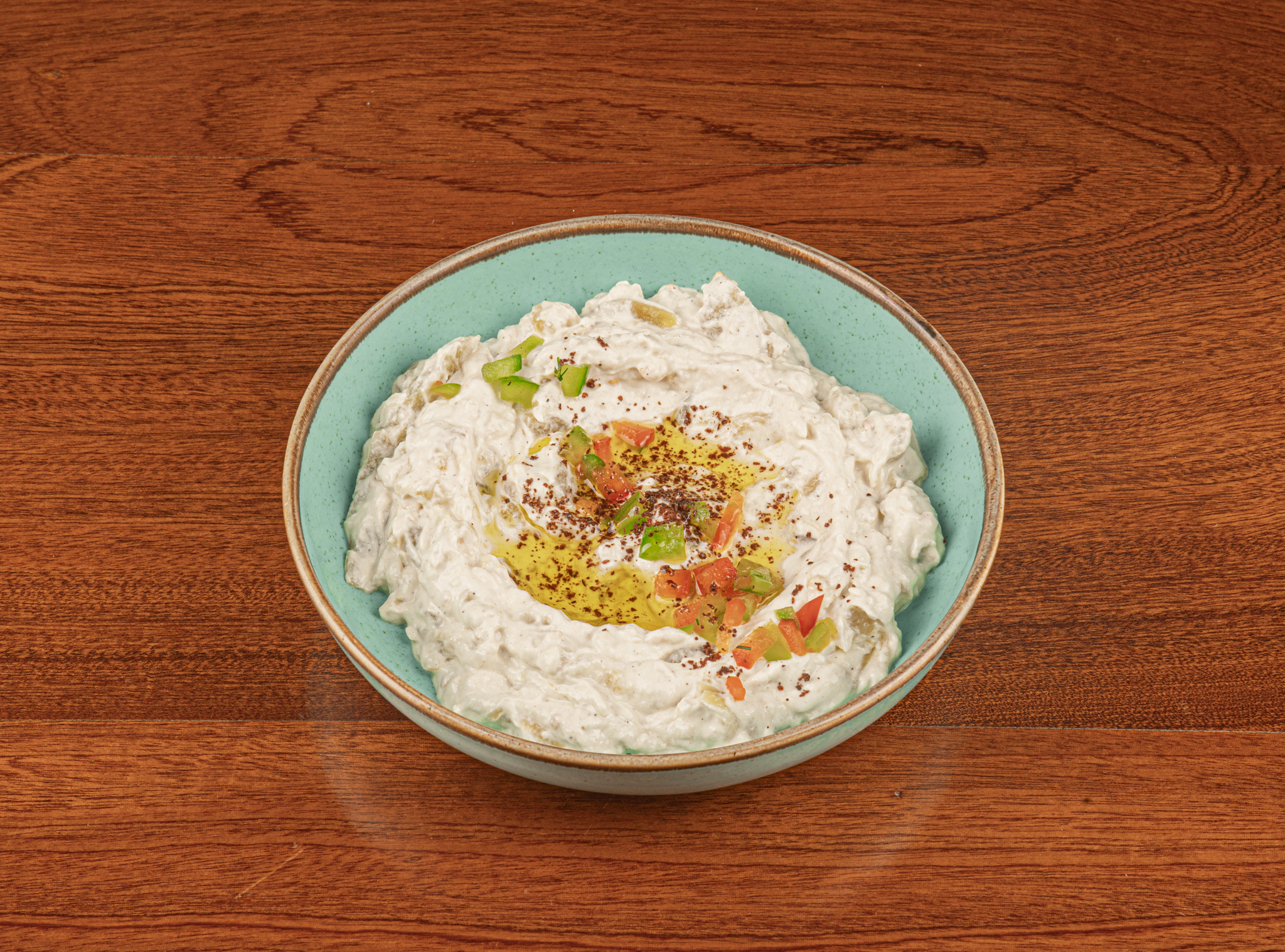 Grilled aubergines pureed with tahini, garlic, olive oil and yogurt